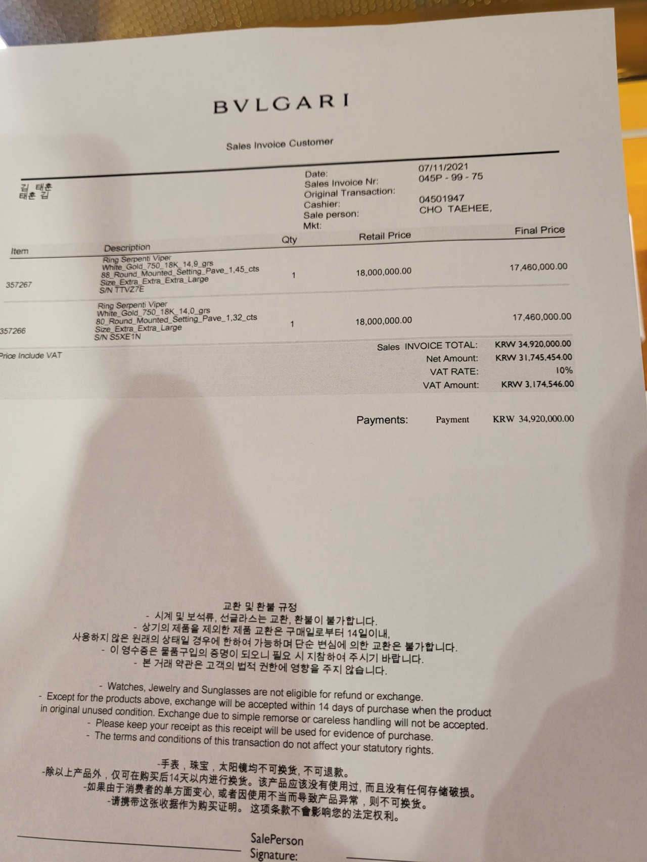 오늘은 불가리에서 반지를 삿어요.
