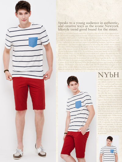 NYbH 유니섹스 포켓 포인트 스트라이프 티셔츠!!