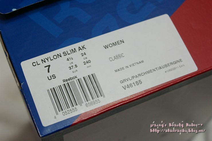 리복운동화, 리복 클래식 나일론 슬림 AK의 품명은 V46155랍니다.