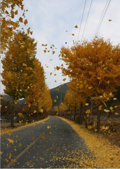 오늘 아침, 외출하는데 은행잎들이 바람에