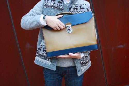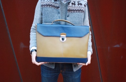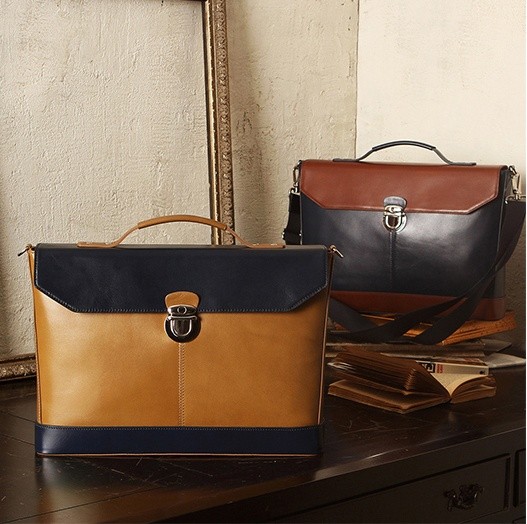 밴플 포터 레더 브리프케이스는 올리브와 네이비 두가지 컬러로 출시되었는데