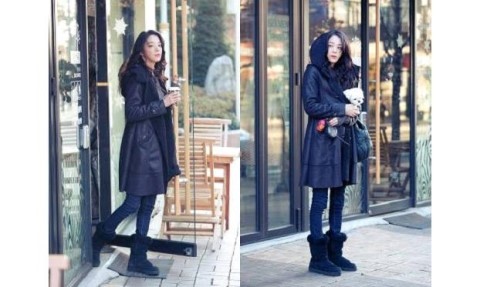 이때는 베이지색 니트에 어그부츠로 편안하면서도 스타일리시하게 코디했는데