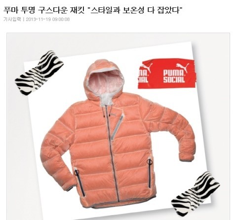 뉴스기사에도 소개되었던 푸마 투명 구스다운 !!
