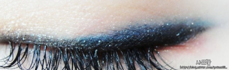 이 부분도 마찬가지로, 아까 발랐던 블루 섀도우와 섞이듯이 살짝살짝.