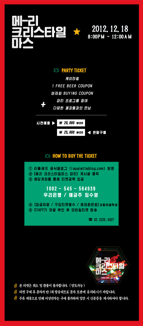 메리크리스타일마스 파티를 소문내준 이웃분께는 파티 초대장 (동반1인) 티켓을 드립니다.