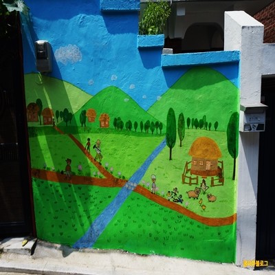 위에 벽화는 정말로 평화로운 농촌의 모습을.. 그린거 같은데~