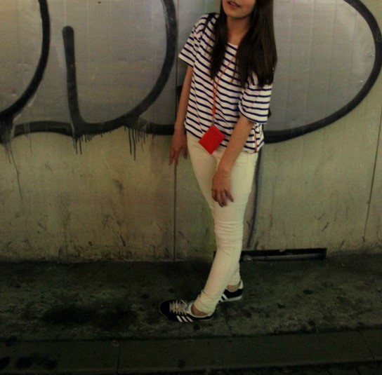 저는 2013 핫 트렌드인 스트라이프 티랑 함께 바쳐 입어 보았답니다