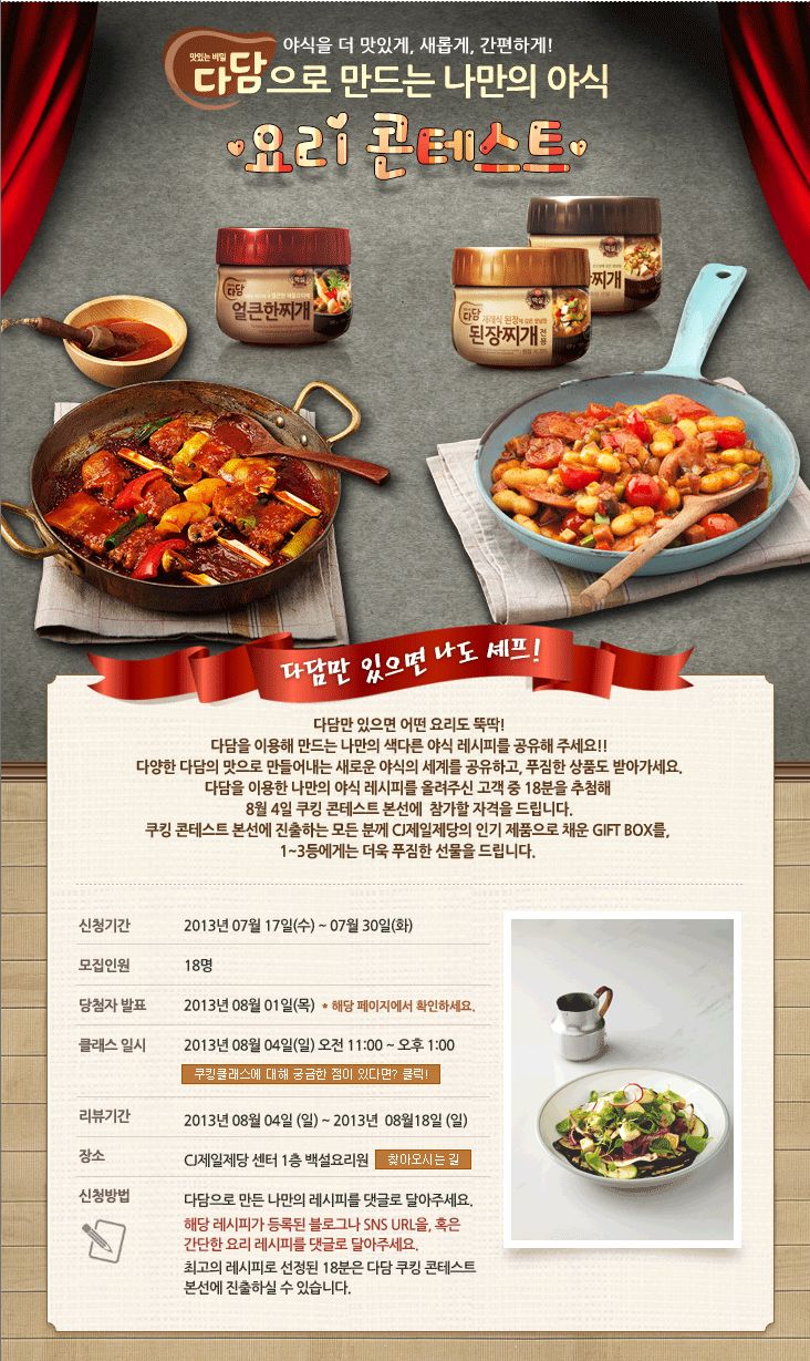 얼마 전 지인으로부터 CJ 다담에서 야식 요리 대회 한다는 얘기를 들었는데요