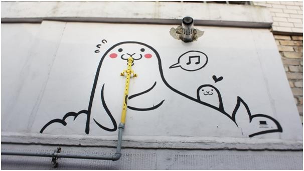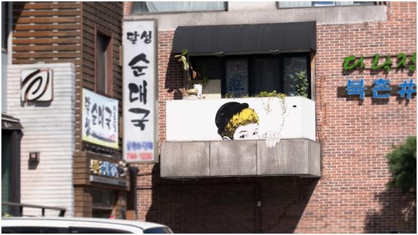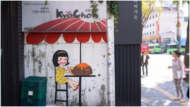 너무 신기한 게 장사 잘하고 있는 간판밑부분에 저런 귀여운 벽화를 그려놨답니다~