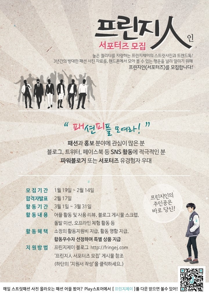 [스트릿패션 매거진 프린지제이 Fringe J] 스트릿패션어플 프린지J 서포터즈(프린지人) 모집합니다~!
