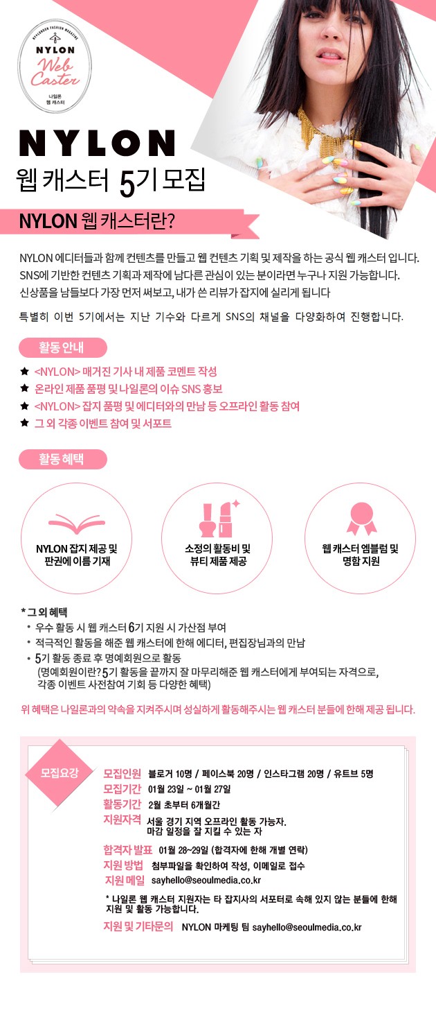 [NYLON] 나일론 웹 캐스터 5기 모집 (~1/27)