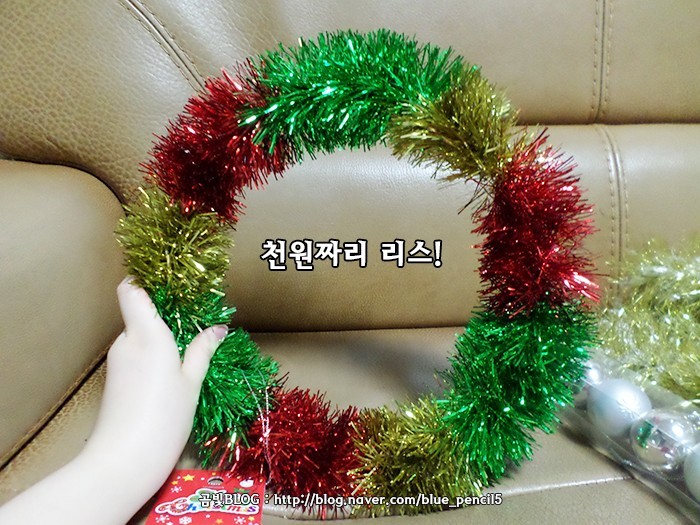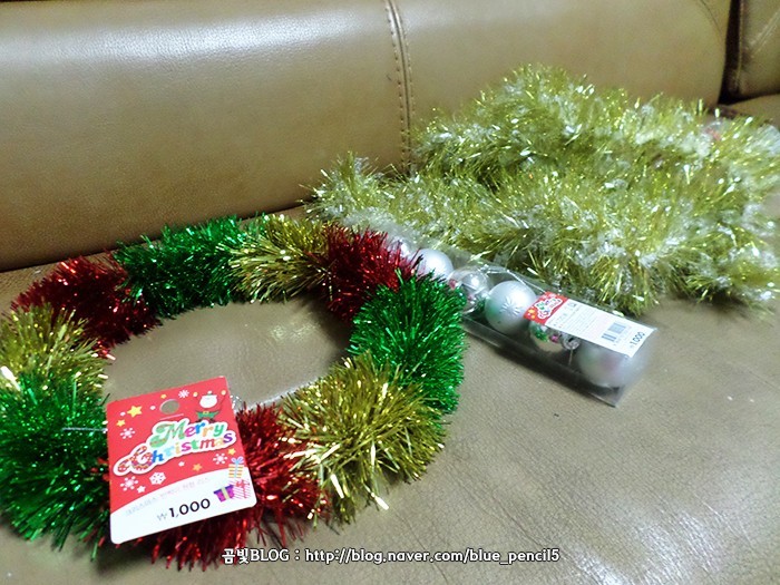 그리고 볼과 함께 꾸미기위해 구입한 천원짜리 크리스마스 트리 장식입니다!
