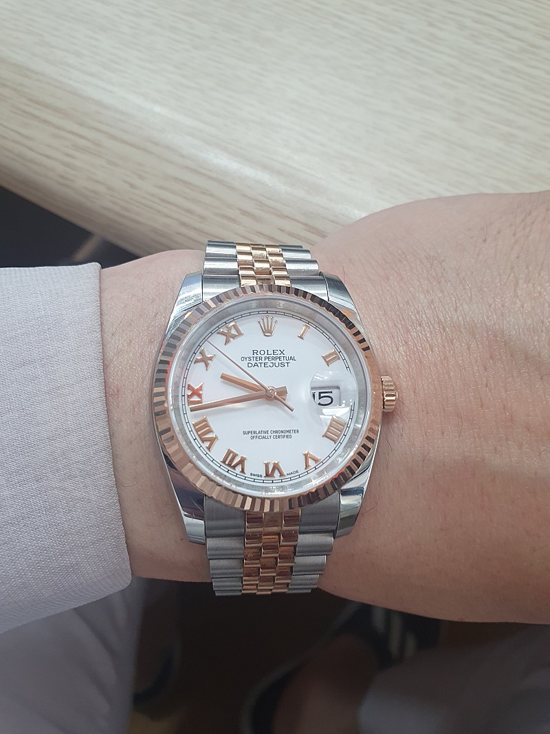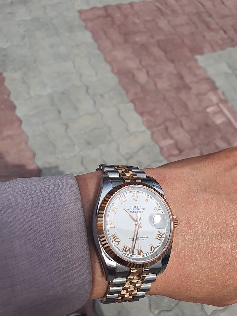 데이저스트 36 로즈골드 흰판 로만 콤비 실물깡패네요 프로라인만 했었는데 데이저스트가 진리네요 ~~