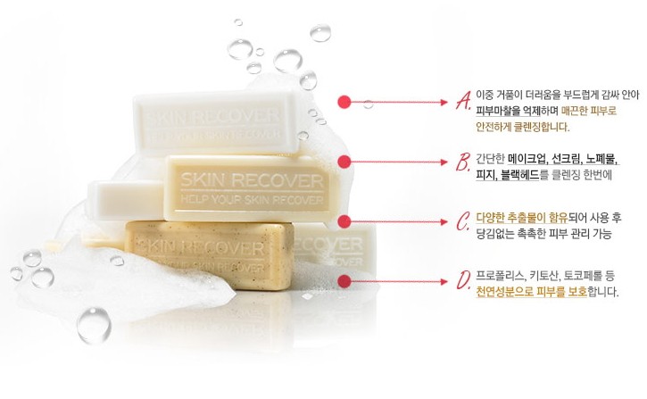얼굴타입별로 구분되어 있는 클렌징바 비누 (폼클렌징) 입니다.