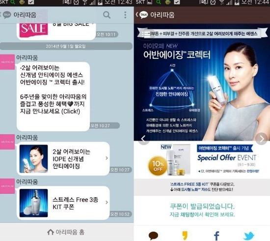아하!! 받은 쿠폰을 아리따움 매장에 가서 제시하면