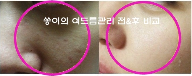 사진에서는 보이지 않지만 코끝의 보기싫던 블랙헤드는 물론이거니와 지저분하던 피부톤도 나름 일정해지고 깨끗해졌답니다.