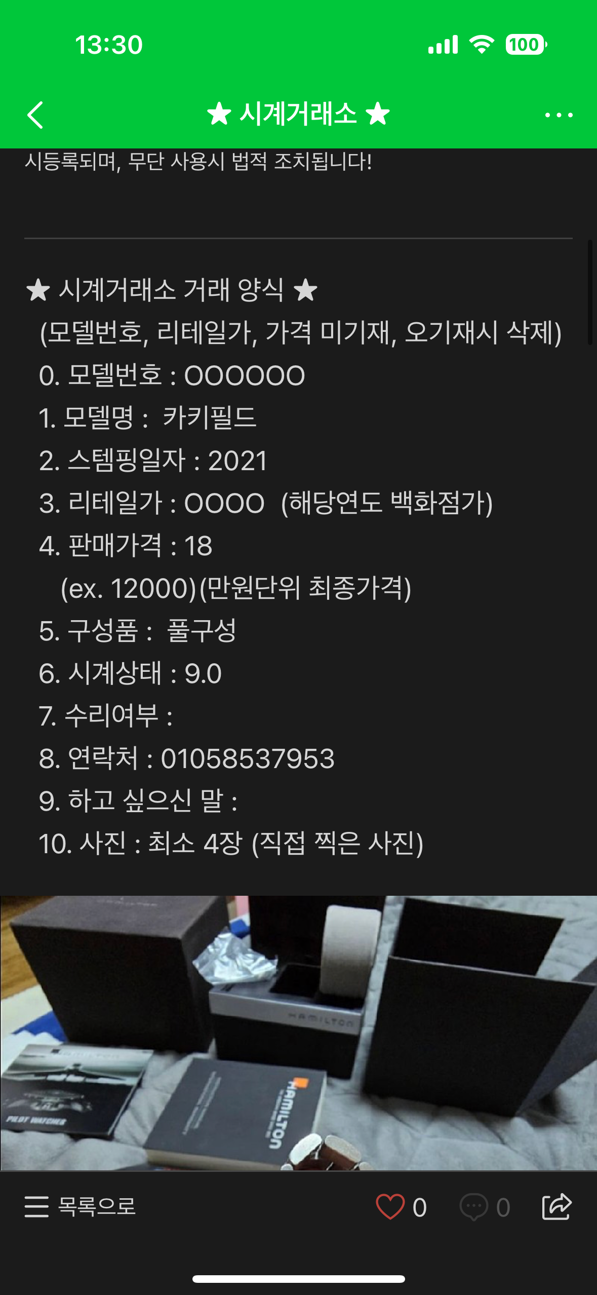 사기꾼조심해밀턴 카키필드 그냥가져가세요 18만원